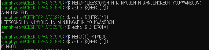 $ HERO=(LEESOONSHIN KIMYOUSHIN AHNJUNGKEUN YOUKWANSOON)