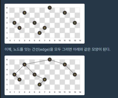 첫 번째 그림과 같이 주어진 좌표를 아래의 그림처럼 이진 트리 구조로 만드는 것이다. 트리를 구성하는 노드들의 규칙은 다음과 같다.