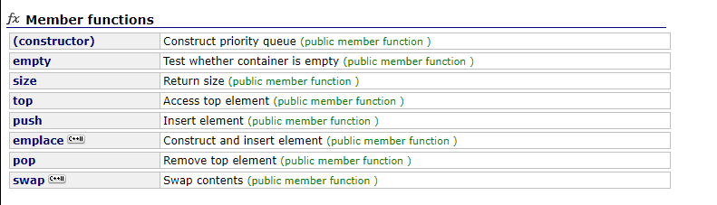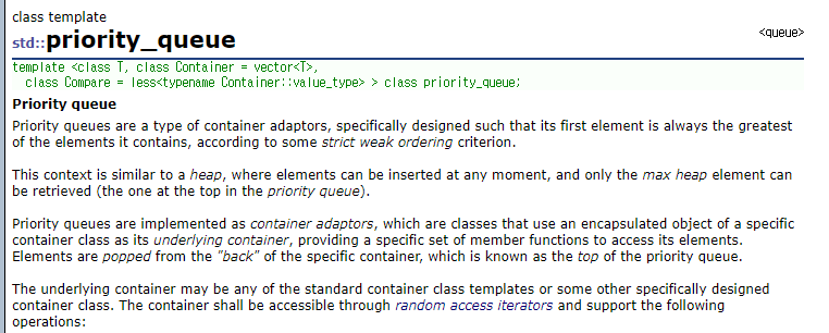 이번 글에는 STL의 <queue> 헤더파일에 존재하는 내부 함수 우선순위 큐를 직접 구현해보았다. priority_queue를 C++ STL 홈페이지(https://www.cplusplus.com/reference/queue/priority_queue/?kw=priority_queue)에서 찾아볼 경우 다음과 같이 나온다.
